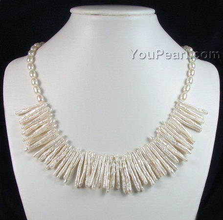 Fresh water biwa stick pearl necklace factory direct sale