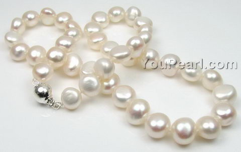 One side of some nugget pearls is flat due to natural grow. Each pearl is individually knotted on twin silk, and this lovely necklace is finished with a 925 sterling silver clasp.