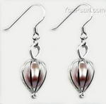 Cultured lavender wish pearl silver cage drop earrings sale, 7-8mm