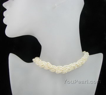 Six strand white potato pearl choker necklace wholesale, 3-4mm