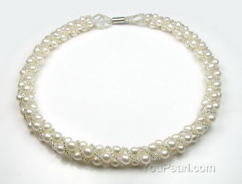 White twisted freshwater pearl necklace for sale online, 5-6mm