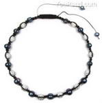 Freshwater black pearl shamballa crystal ball necklace wholesale, 10mm