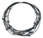 Peacock black freshwater pearl multi-strand leather necklace on sale