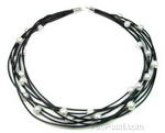 Multi-strand white freshwater pearl leather necklace wholesale