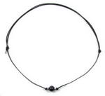 Single black freshwater pearl leather necklace on sale, 10mm