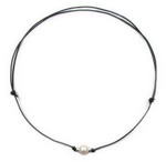 White freshwater single pearl leather necklace wholesale online, 10mm