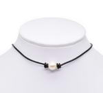 Single pearl choker necklace, leather floating pearl necklace onsale, 11mm