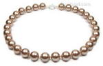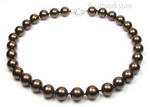 Coffee chocolate round shell pearl necklace discounted sale, 12mm