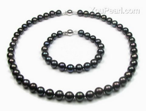 Currently viewing:  Black round cultured pearl necklace bracelet set bulk sale, A+ 8.5-9.5mm