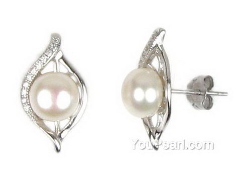 6-7mm white pearl earring stud, freshwater 925 sterling silver wholesale