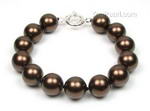 Coffee chocolate round shell pearl bracelet on sale, 12mm