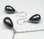 Black teardrop shell pearl jewelry set factory direct sale, 12x18mm