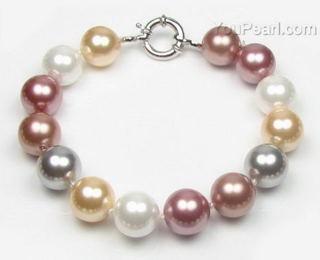 Round multicolor shell pearl bracelet wholesale online, 12mm