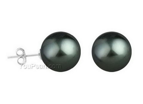 10mm grey round shell pearl earring studs online buy, sterling silver