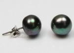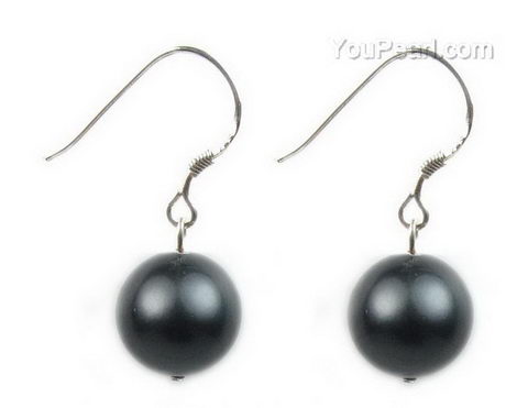 10mm dark gray round shell pearl sterling silver earrings wholesale