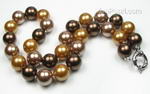 Multicolor sterling tin cup off-round freshwater pearl necklace, 7-8mm