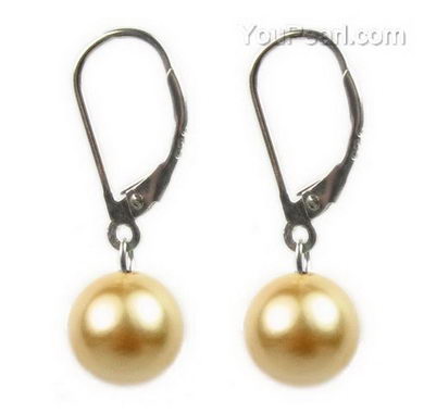 10mm gold round shell pearl sterling silver leverback earrings on sale