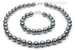 Dark gray round shell pearl necklace bracelet set online buy, 10mm
