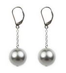 12mm light gray round shell pearl silver lever back earrings wholesale