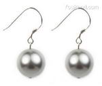 12mm light gray round shell pearl eurowire earrings, 925 silver