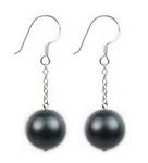 12mm peacock black round shell pearl eurowire earrings, 925 silver