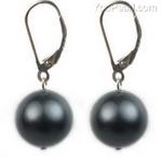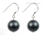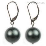 12mm dark gray round shell pearl silver lever back earrings wholesale