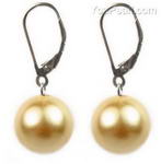 12mm gold round shell pearl sterling silver drop earrings wholesale