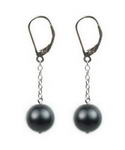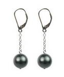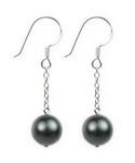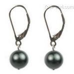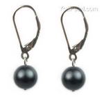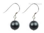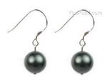 8mm dark gray round shell pearl silver drop earrings wholesale