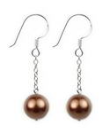 8mm coffee round shell pearl silver drop earrings discounted sale