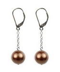 8mm bronze round shell pearl eurowire earrings sale, sterling silver