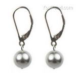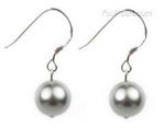 8mm light gray round shell pearl drop earrings, 925 silver