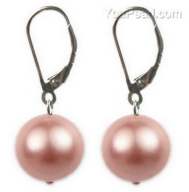 12mm pink round shell pearl 925 silver eurowire earrings on sale