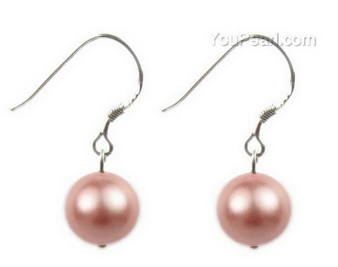 10mm pink round shell pearl silver drop earrings discounted sale