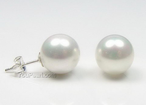 10mm white round rainbow shell pearl stud earrings on sale, 925 silver