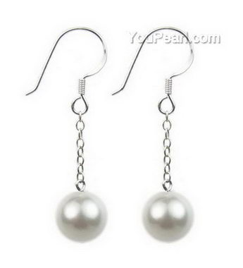 8mm white round shell pearl drop earrings discounted sale, 925 silver
