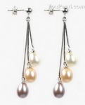 7-8mm multicolor freshwater pearl drop earrings bulk sale, 925 silver