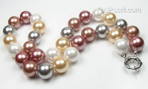 Multicolor round shell pearl necklace wholesale online, 12mm round