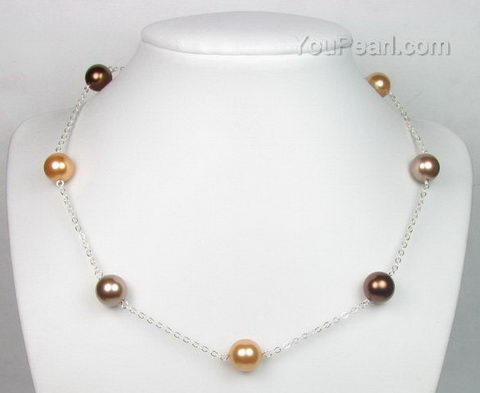 The shell pearl tincup necklace is finished with a sterling silver lobster claw clasp.