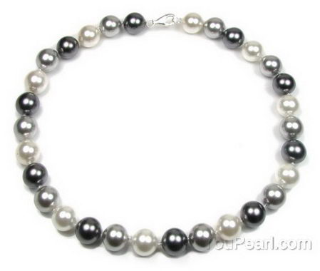 Round white, light grey, dark grey shell pearl necklace on sale, 12mm