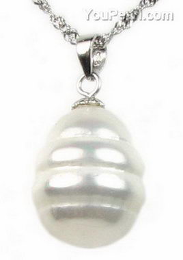 Baroque ringed white shell pearl teardrop pendant whole sale, 13x16mm