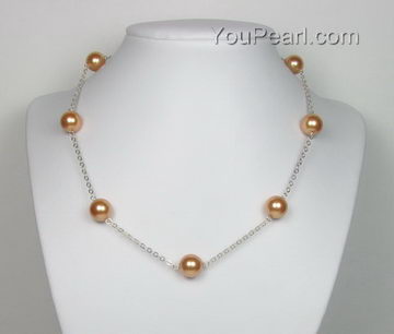 The shell pearl tincup necklace is finished with a sterling silver lobster claw clasp.